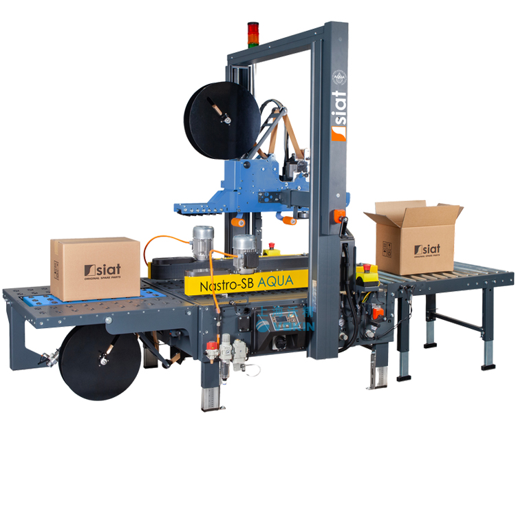 NASTRO-SB AQUA半自動封箱機(jī),配備雙側(cè)驅(qū)動皮帶,由SIAT設(shè)計和制造,